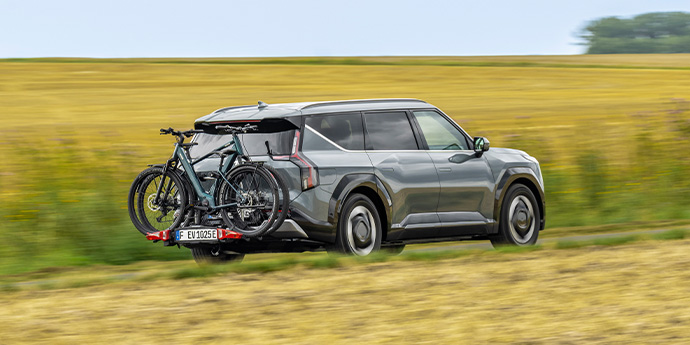 Mit einem elektronisch geregelten Allradantrieb ist dein EV9 besonders effizient und leistungsstark. Zusätzlich bietet er dir einen optimalen Grip.